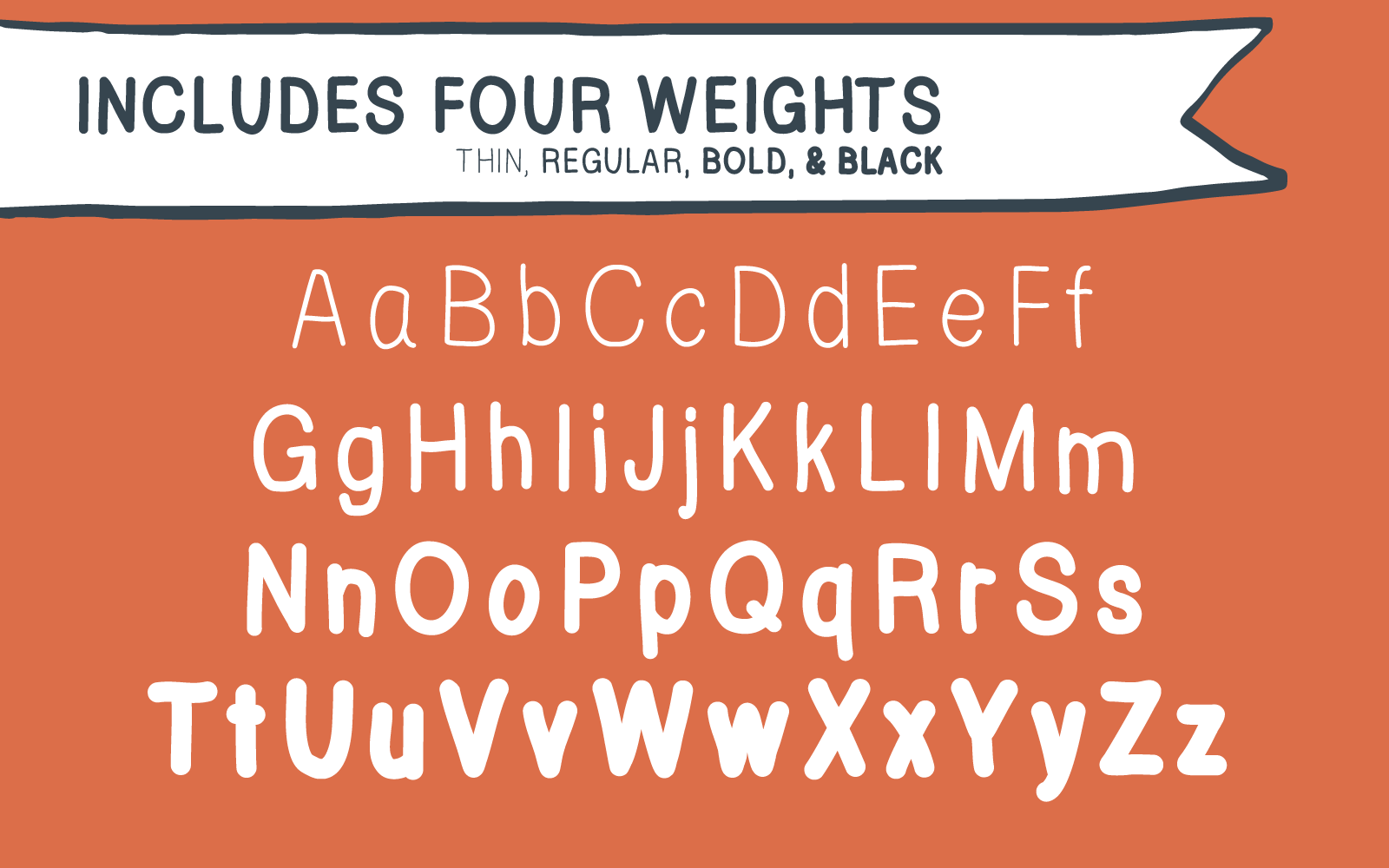 From Thin to Black, KidMin Sans lets you create clear, easy to read, and personality-filled designs for your ministry.