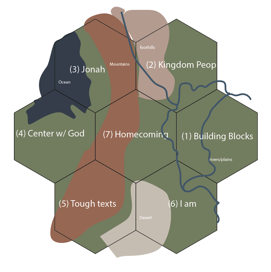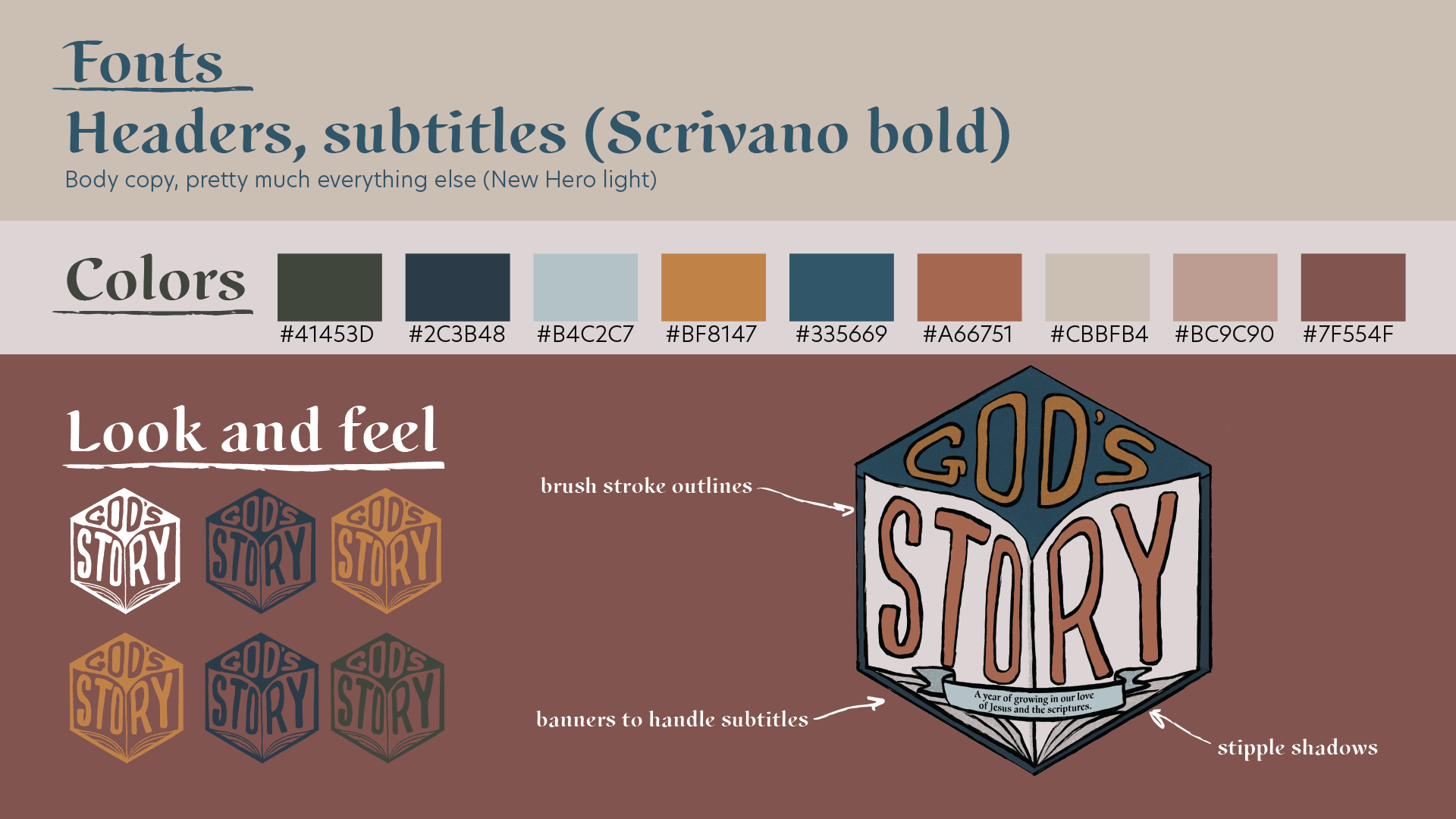 One of the stated goals of the series was to take the narrative of Scripture and help it feel relatable to those going through the series. As the Creative Director and I worked through different concepts, we landed on a map (though more like Settlers of Catan than the original drawing) and illustrations that gave the series a storybook feel.
